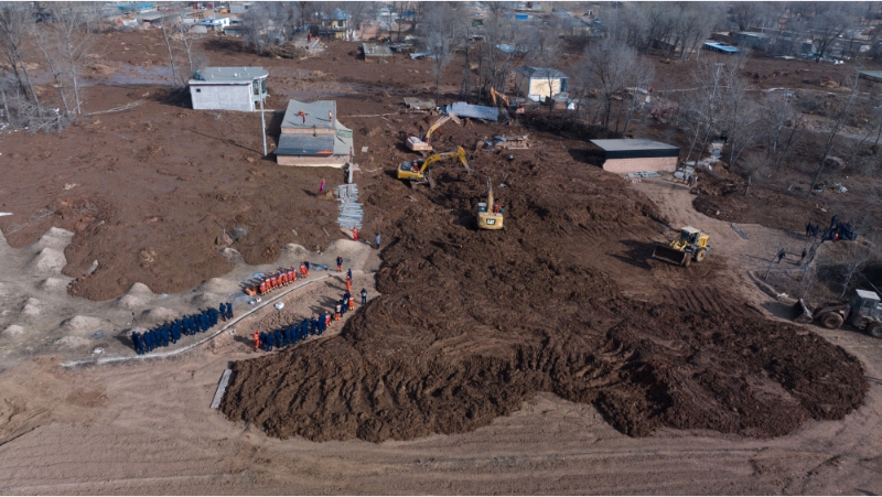 青海省消防救援总队加紧挖淤泥,因金田村村口的公路,以及路两侧的房舍和空地,如今都被泥浆吞没,央视记者说,砂涌现象导致的淤泥特别湿,又稠又黏,重量大且密度也大,单靠手挖不动,只能靠重型机械。