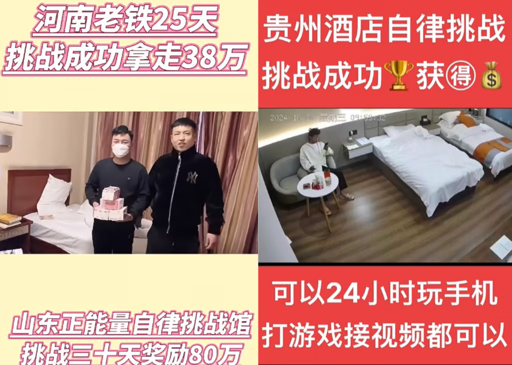 自去年开始,中国社群平台开始出现与“自律挑战”相关的活动,声称参赛者只要独自待在酒店房间,不与外界接触,遵循一些看似简单的规则,就能将数千元的报名费,换成数万元的奖励。挑战规则包括: