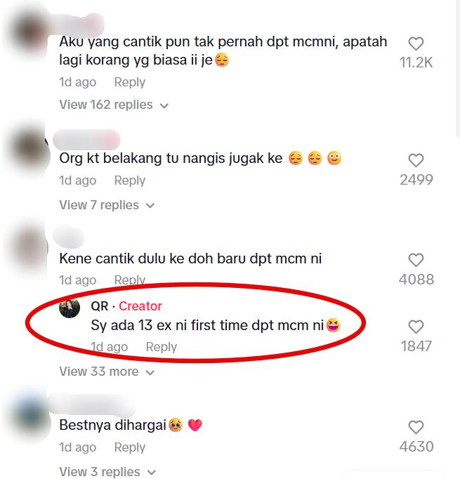 Qistina 之所以说出这番话,是为了回应一位留言表示羡慕她被宠爱的网友。