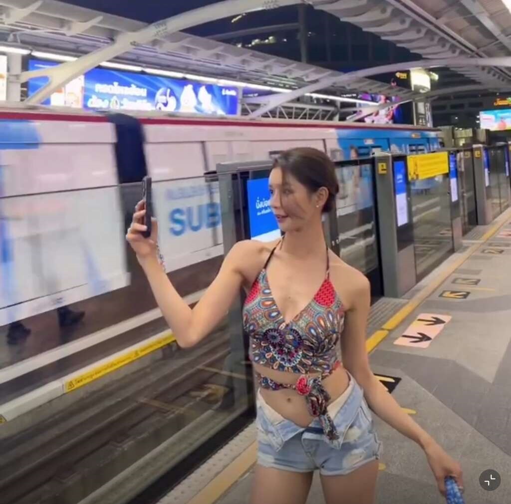 透过蔡卓宜分享的照片可见到,她身穿一件色彩鲜艳的绑带式露背短版上衣,上衣采绕颈设计,并以腹部交叉绑带收束,露出纤细的腰线及腹部线条。她的下身搭配浅色牛仔短裤,裤头随性打开,肩上还背着一条蓝白点点编织背带的小包,整体造型既清凉又俏皮。