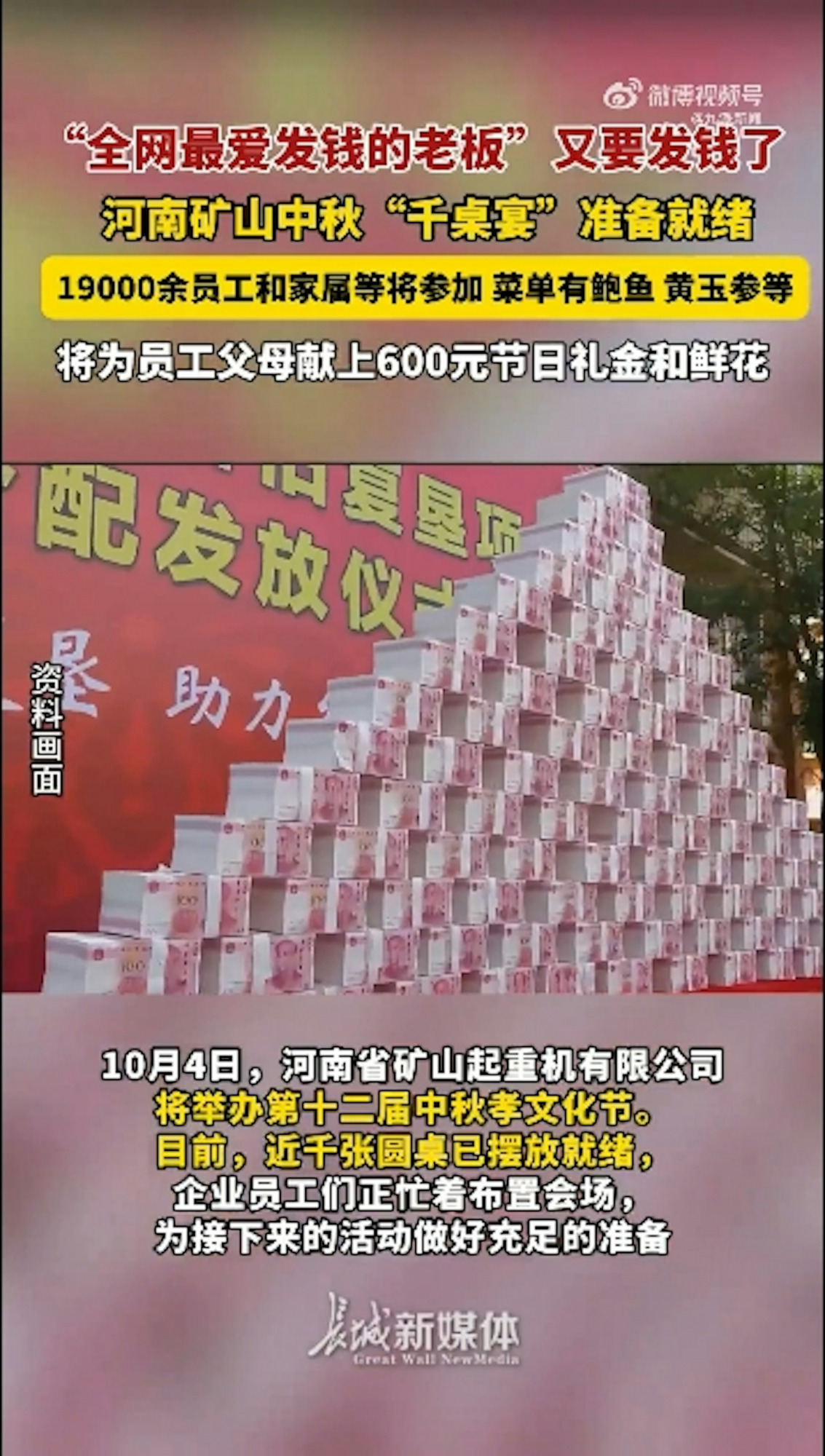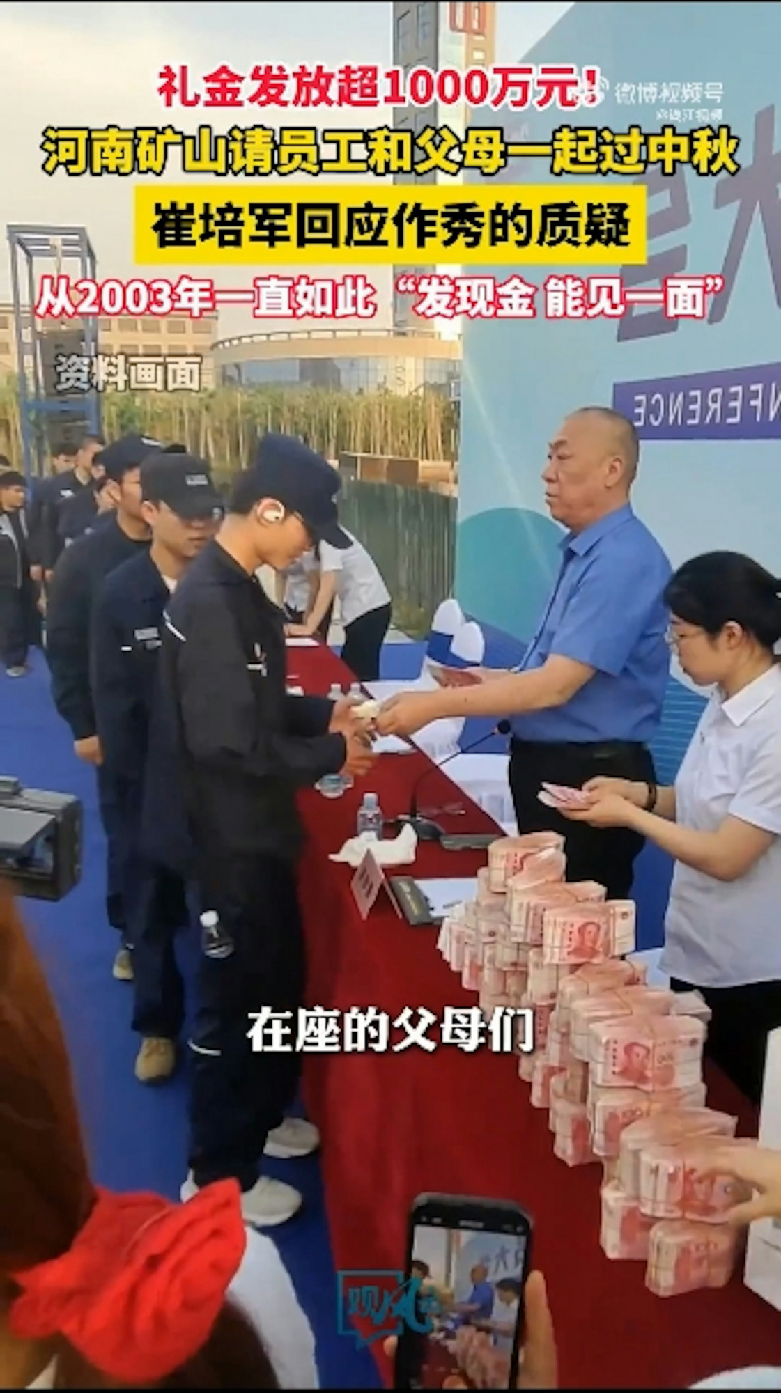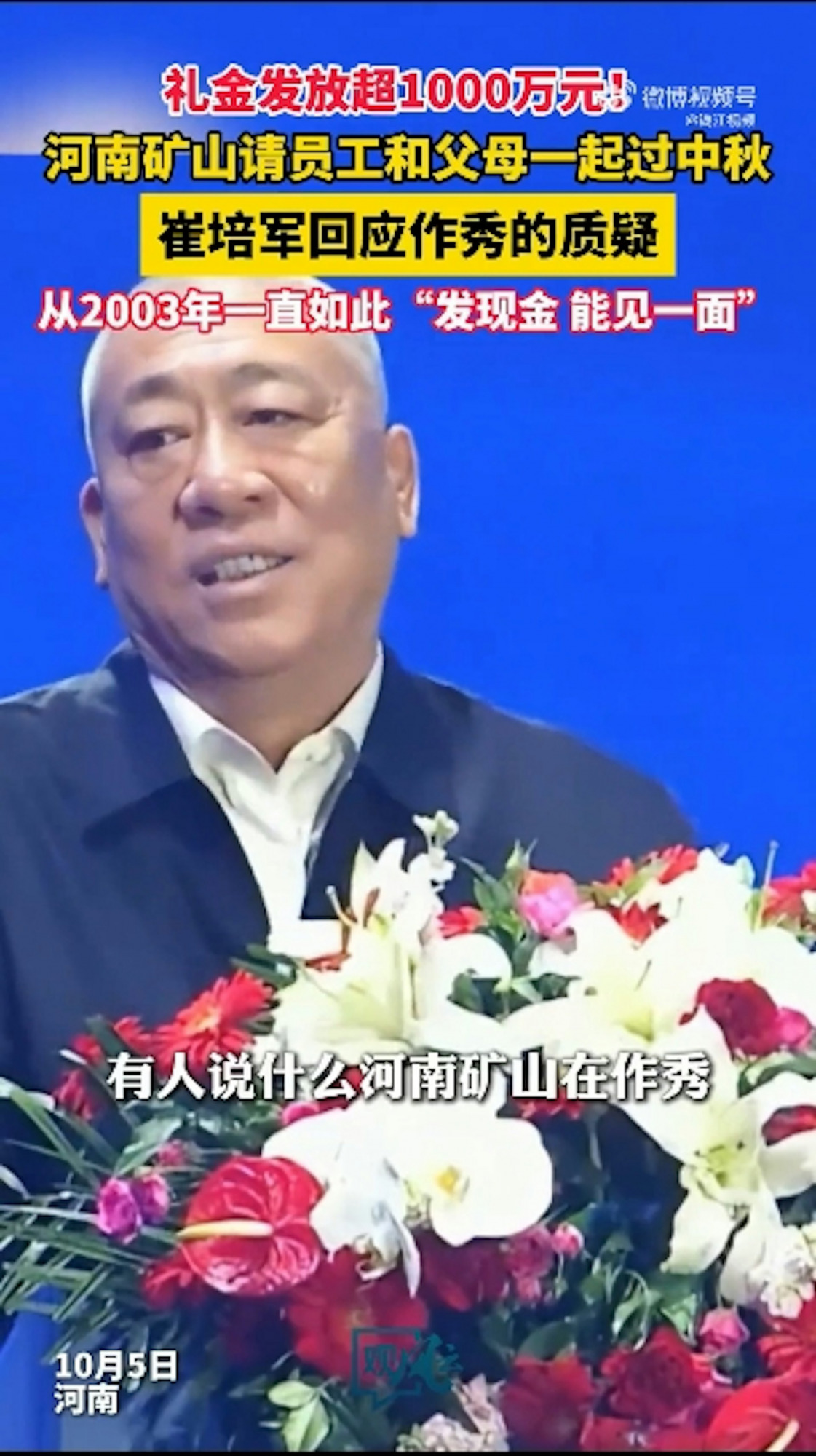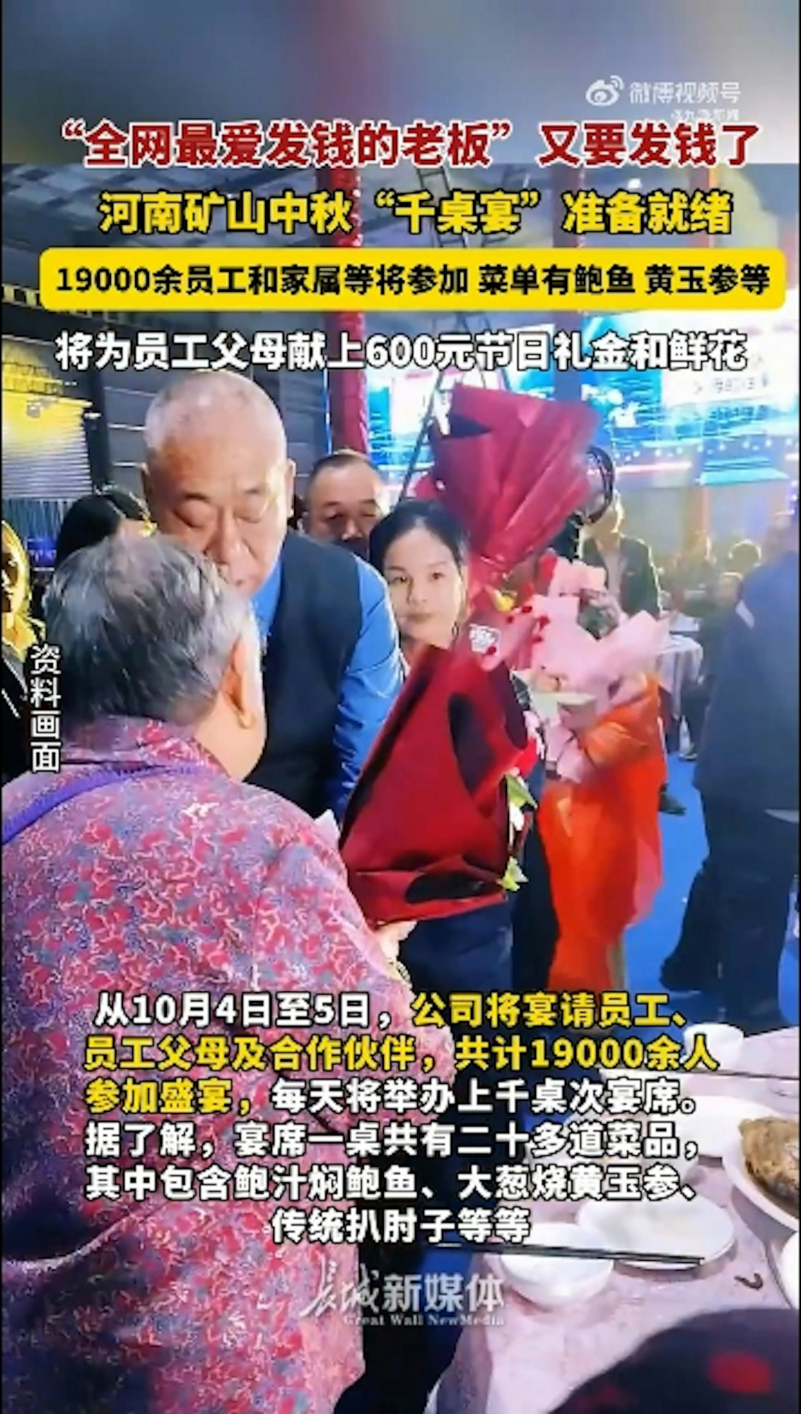 根据《九派新闻》等陆媒,河南矿山连续2天席开千桌,邀请1.9万名员工、员工的父母及合作伙伴共襄盛举。崔培军亲自为每位员工的父母送上600元人民币(约355令吉)节日礼金与鲜花,气氛热络。