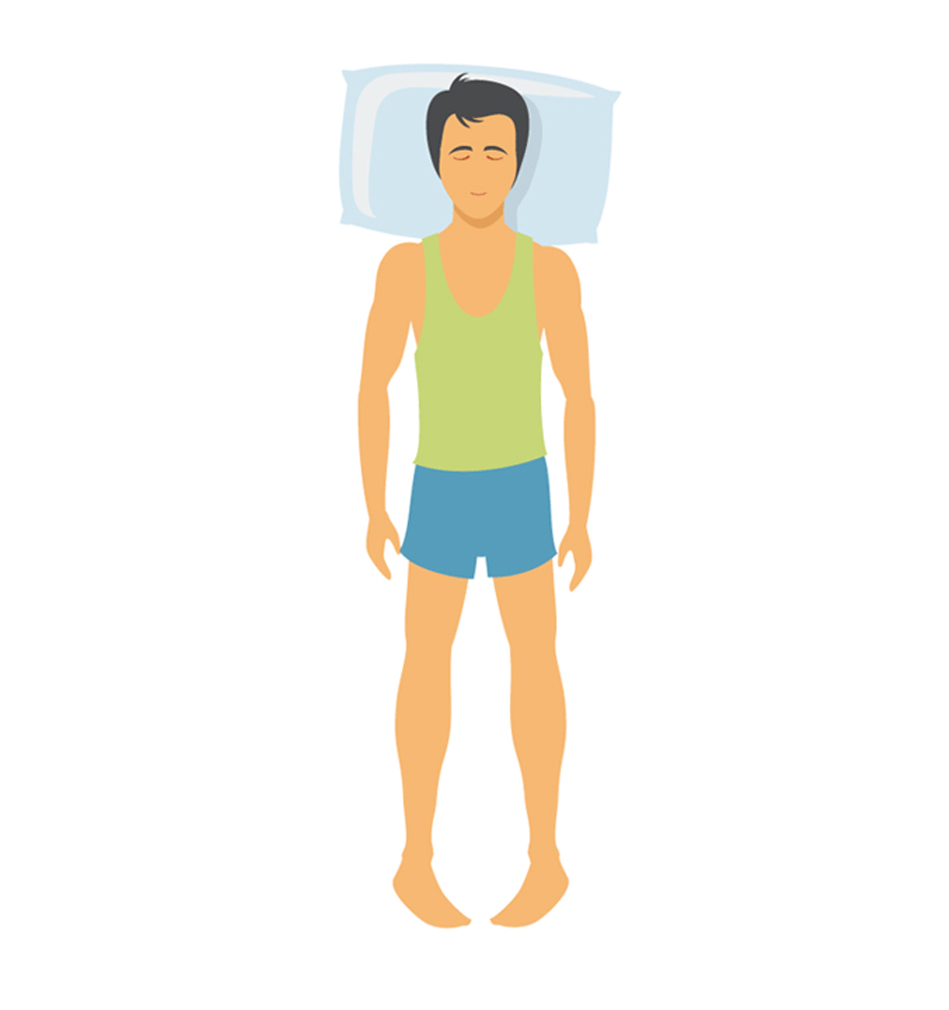 在士兵睡姿中,你的身体睡得就像士兵站立那样直。双腿没有弯曲,你的双臂直直地躺在身体两侧。伊兹科夫斯基声称,偏爱士兵睡姿的人安静内敛,但也有很高的标准。一些人可能会发现士兵睡姿有助于减轻压力点。虽然仰躺可能会在人平躺时引发反流性食管炎,但对于那些头部稍高的人来说,症状会减轻。