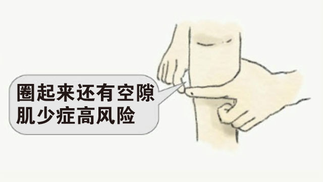 结果:如果圈不起来,代表肌力还不错;如果刚刚好,代表肌肉量可能开始流失。若圈起来手指还可重叠,便可能患有肌少症。