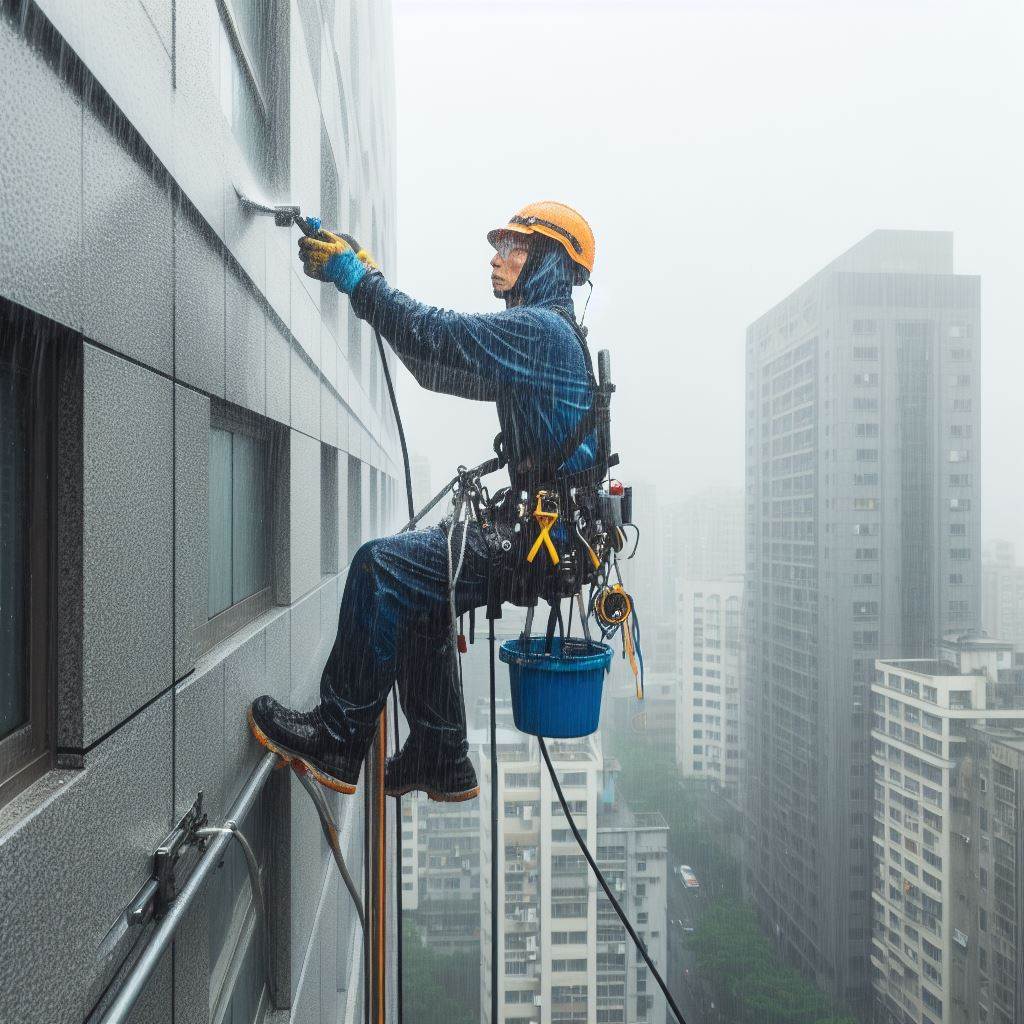有次他的团队承包一间士林的大楼外墙清洗,那对大楼外墙可能10多年没清过,非常脏,他们清的很辛苦。12月的黄昏天已经濛濛暗了,阿贝在9楼感觉到冷风灌进他的衣服里很冷又难受,他们早已超过预定的时间,但这案子明天必须结束,因为后天还有重要的案子,他们把100%的体力与努力撑着。