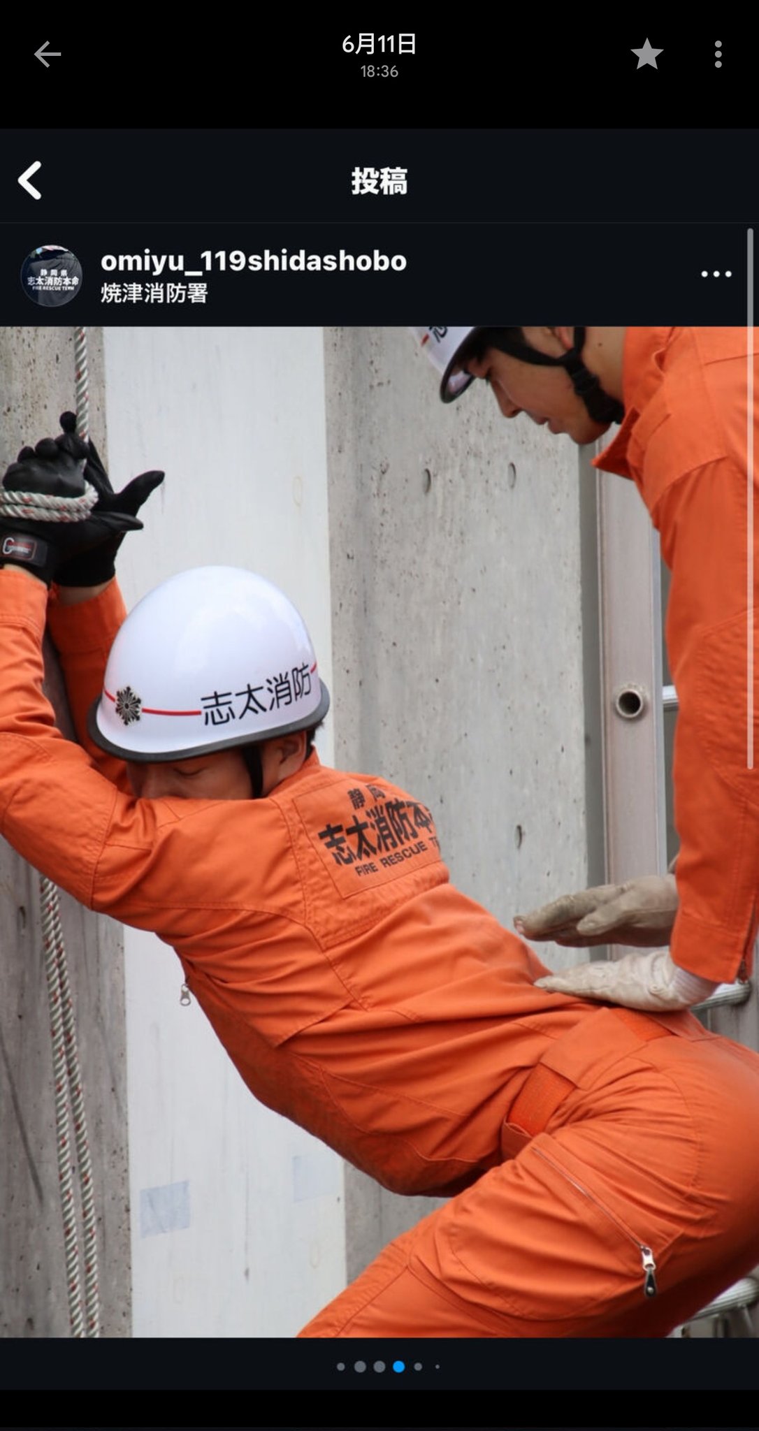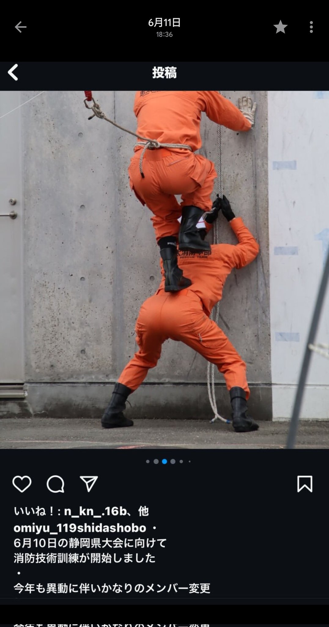 社群平台“X”名为“kz”的日本网友,15日分享3张照片截图,照片来自日本静冈县藤枝市的志太消防本部官方IG账号。照片显示,志太消防本部在6月10日为“第53届静冈消防救助技术大会训练”进行训练,参赛消防员都需要作出指定的技能或动作,志太消防本部也派人拍下训练过程,并分享到社群平台。