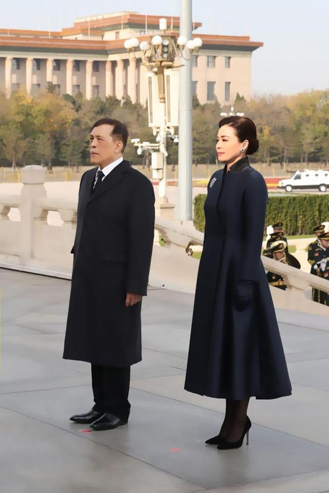 泰国和泰王瓦吉拉隆功和王后苏提达日前出访中国,从机场的庄严肃穆到灵光寺的梵音缭绕,每一步行程皆成风景,每一套穿搭皆是语言。