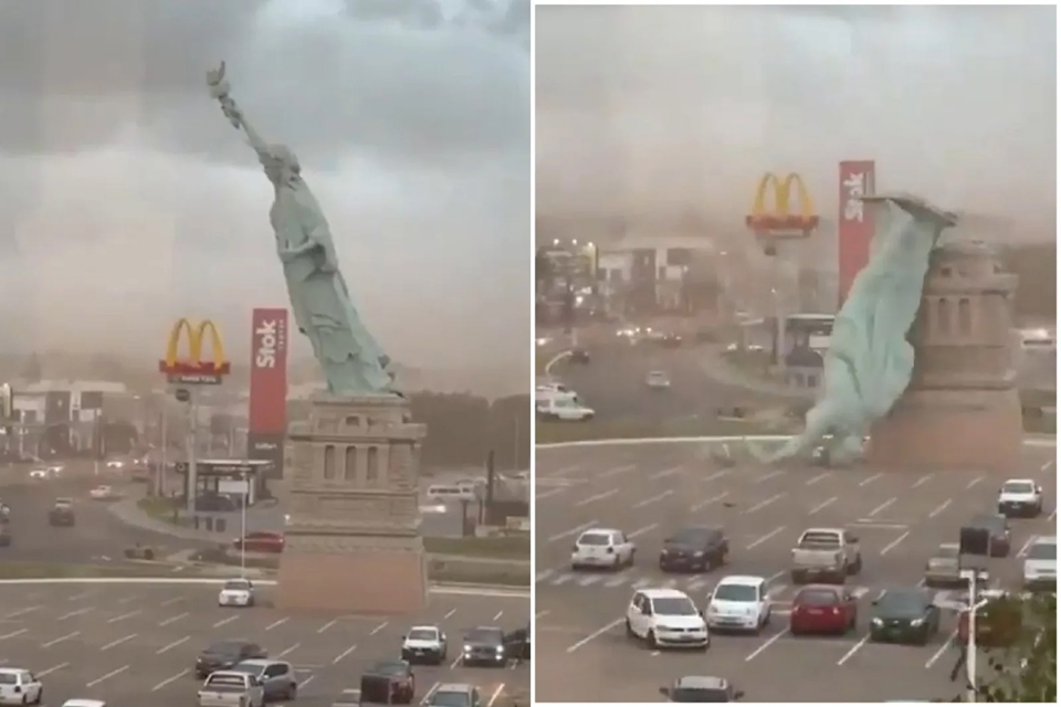 事故发生于15日下午3时左右,当地正遭受暴风袭击,当地一处Havan卖场停车场上,有一座24公尺高的“自由女神”雕像,但这尊雕像似乎无法承受暴风袭击,随即被吹到倾斜。再过不久,整座雕像应声倒塌,头部着地后直接“断头”。