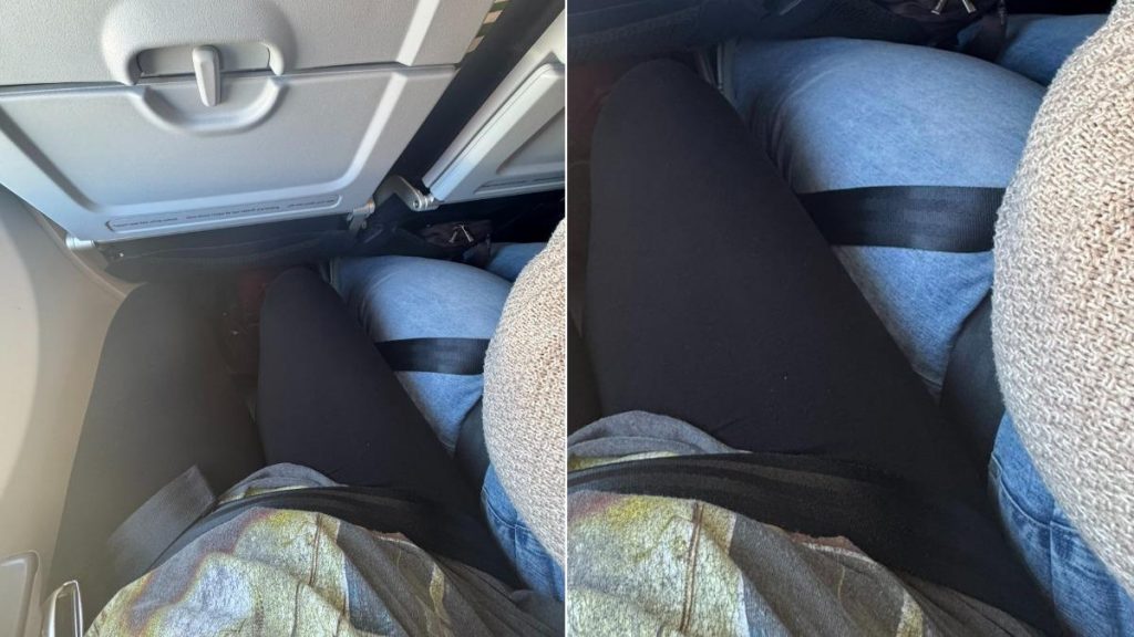 据《每日邮报》报导,女子是在上周于社交平台X,以用户@britsalterego发布了一张照片,显示自己被困在靠窗的狭窄座位上。图中可见,邻座乘客由于体型太过肥胖,明显挤占了她的座位空间,甚至将腿部紧贴在她的身上。