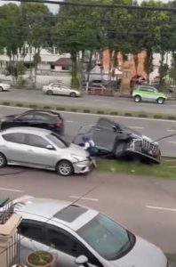 今日下午,在社交媒体流传一段31秒的视频,是一辆丰田Alpahard休旅车冲撞摩哆,并再倒退时滚落斜坡,引发热议。