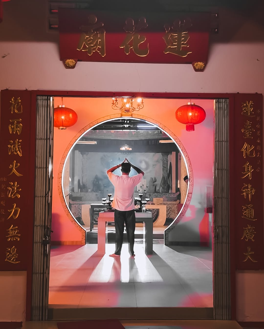 当电影剧本写好之后,我们第一件事情就是打圣杯,如果大二伯爷不批准,我们就不拍,这个是最重要的环节。最终,我们在双溪古月(Malim Nawar)的莲花三太子庙求得圣杯,成功得到大二伯爷的批准开拍电影,而那间神庙也成为我们其中一个重要的拍摄场地。