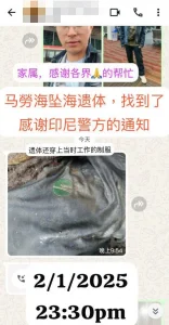 “华男坠海失踪”案;死者遗体失踪第5天后,终被印尼警方寻获,证实毙命。