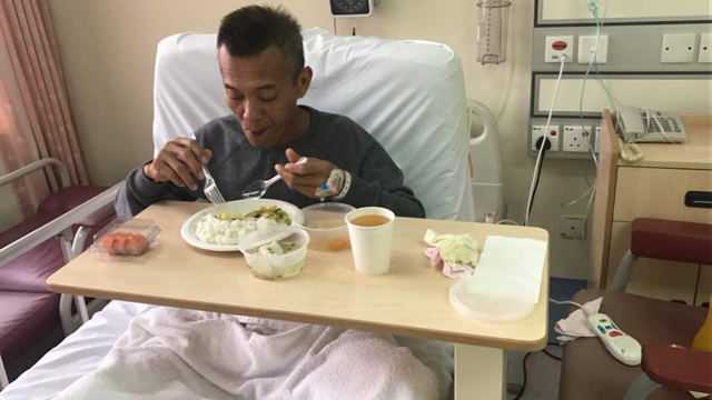 但是,医生叮嘱他一定要强逼自己进食,不然身体缺乏营养,体力不支,白血球下降就不能继续电疗。他形容,那段时间,他的脾气变得暴躁,动不动就大发雷霆,让子女受了不少委屈。现在回想,一个癌症病人真的很需要家人关怀和体谅。