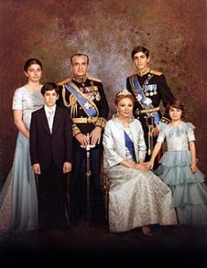 De gauche à droite, Fahranaz, Ali Reza, Mohammed Reza Shah Pahlavi, Farah Pahlavi, Reza, Leila.