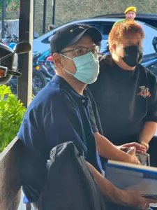 涉案车主于今早7时许,抵达古来推事庭,全程戴着口罩和鸭舌帽。