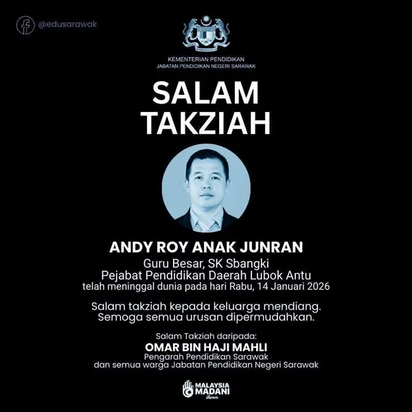砂拉越教育部昨日(14日)发文告,向男死者家属致哀。